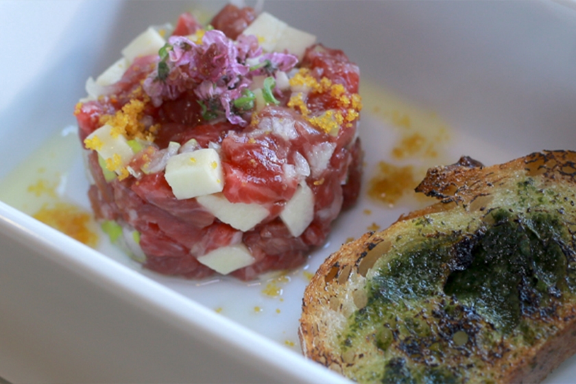 和牛の塩ユッケ バケット添え