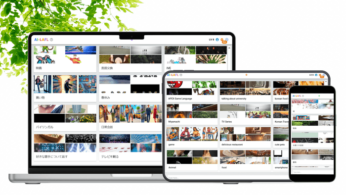 「AI-LAFL」は、AI技術を駆使し画像・音声・テキストを通じて学習者の感覚をフル活用した多角的な学習体験を提供しています。
