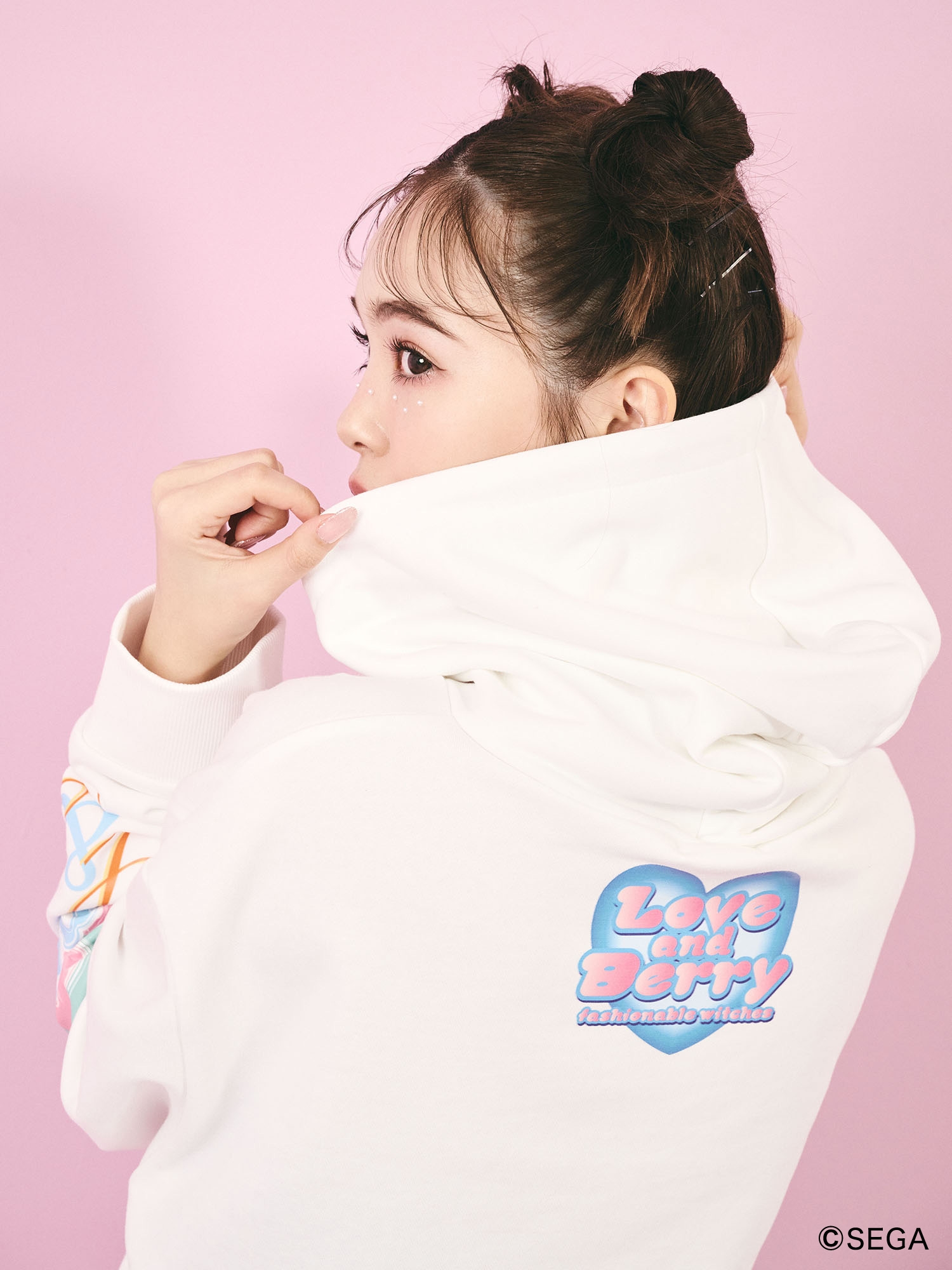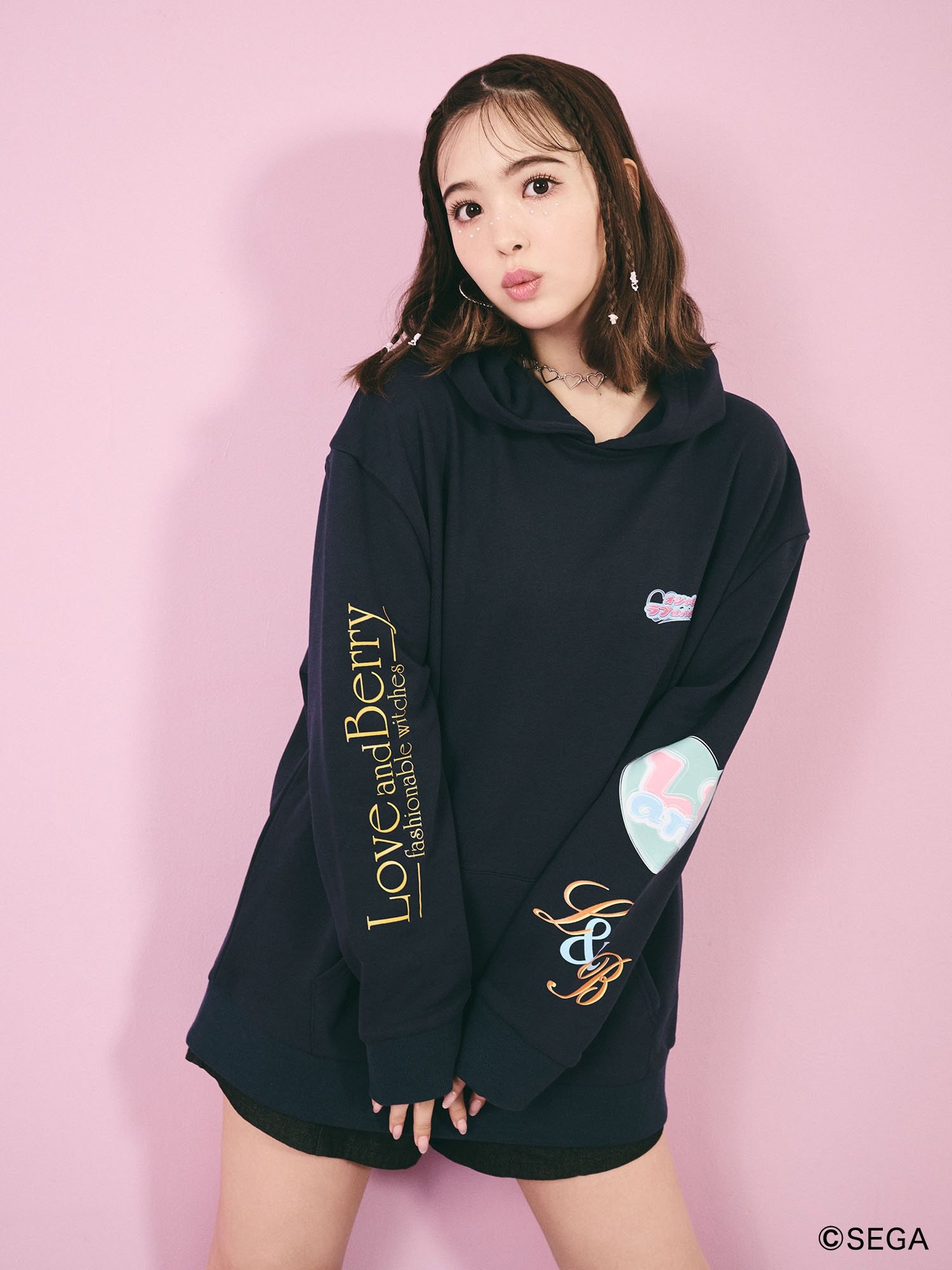 「オシャレ魔法カード」を使って着せ替えを楽しむゲーム「オシャレ魔女 ラブandベリー」は、2004年から稼動していた株式会社セガのキッズカードゲームで小学生女児を中心にブームを巻き起こしたコンテンツになります。ディレクターの藤田ニコル自身の想いも強く、今回コラボレーションが実現しました。コラボレーションアイテムは、作品モチーフを散りばめたパーカー、作品をイメージしY2Kのテイストに落とし込んだアームウォーマー付きタンクトップ、カルナムールのロゴをラブベリロゴ風に表現したアクリルキーホルダーの3型です。