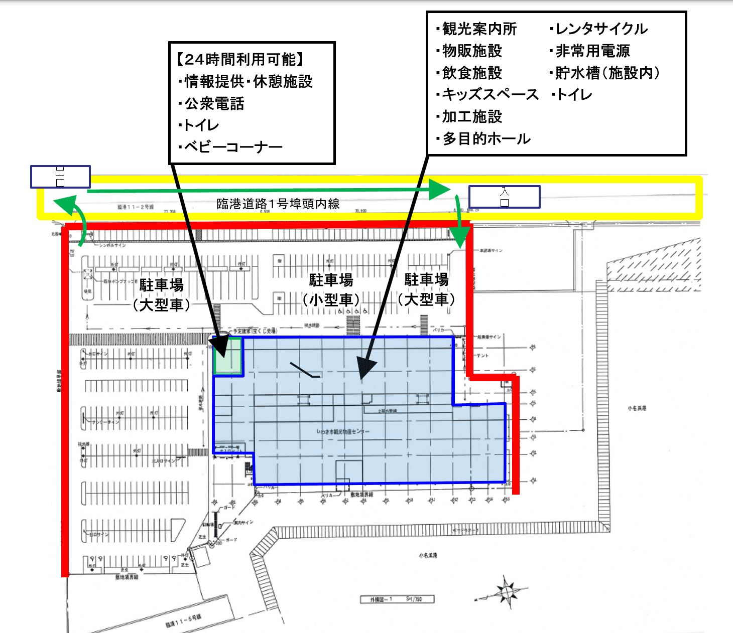 ・福島県、いわき市の観光と物産振興の中核的施設として、地場産業や地域経済の活性化、さらには、小名浜港1・2号埠頭の再開発事業として先導的な役割として建設