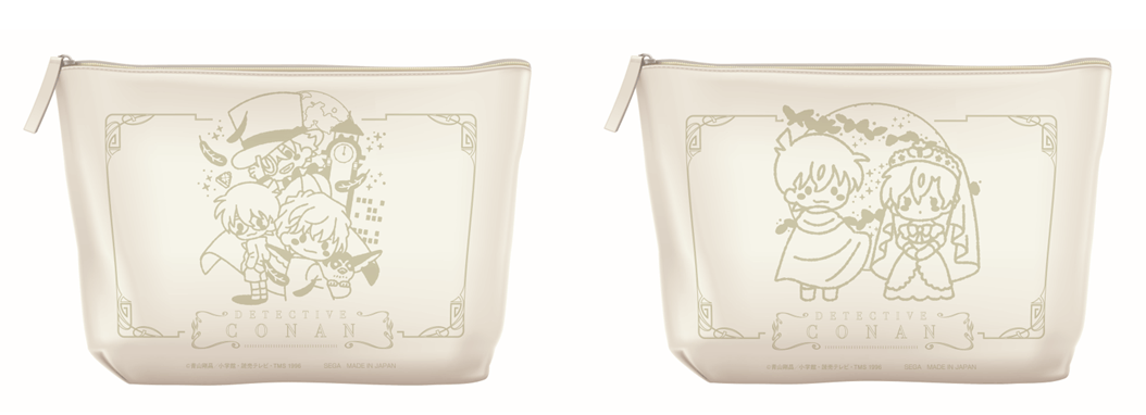 エピソード「集められた名探偵!工藤新一VS怪盗キッド」と「命がけの復活 黒衣の騎士」をイメージしたイラストを用いたポーチ。