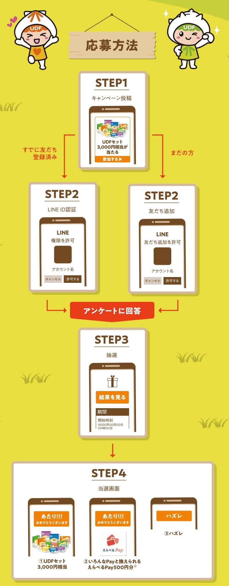 当選発表 : アンケート回答後、その場で抽選結果がわかります。(※3)