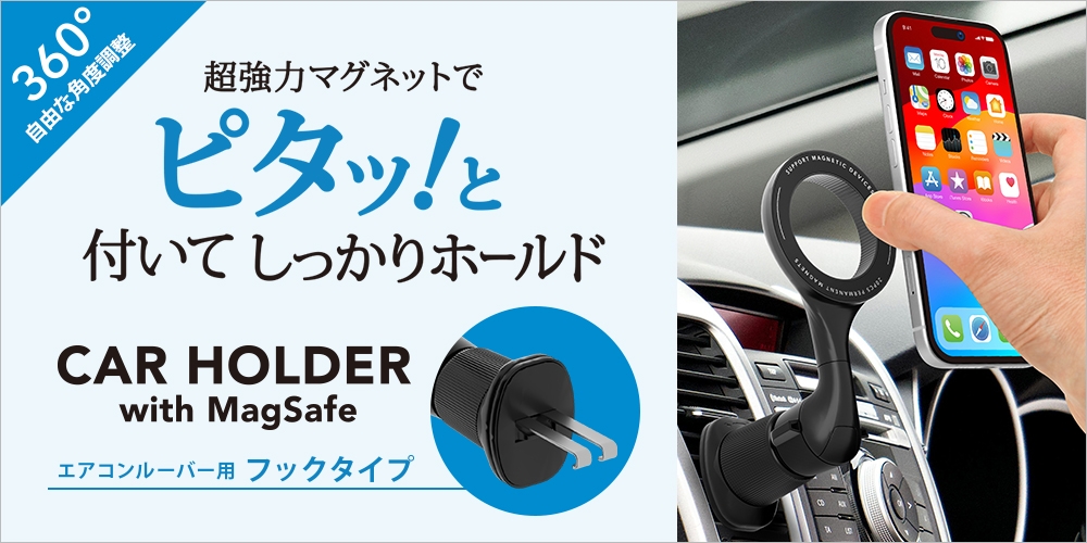 MagSafeに対応したiPhoneを容易に着脱できるカーエアコンの吹き出し口(ルーバー)に取り付け可能な車載用マグネットホルダーを株式会社PGAが5月20日より発売