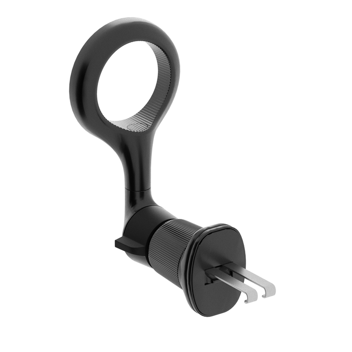ホルダーの固定方法は、車のエアコン吹き出し口(ルーバー)に引っ掛けて固定するフックタイプです。アーム部はエアコン吹き出し口の風の流れを塞がないように設計されております。