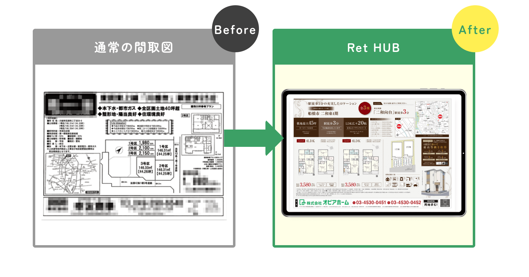 従来「Ret HUB」は、物件情報を入力するだけで販売図面と物件サイトを自動生成できる不動産DXツールとして提供していました。