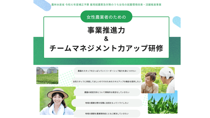 女性リーダー・経営者の育成をサポートする 「女性農業者のための事業推進力&チームマネジメント力 アップ研修」受講生の募集を開始いたしました!