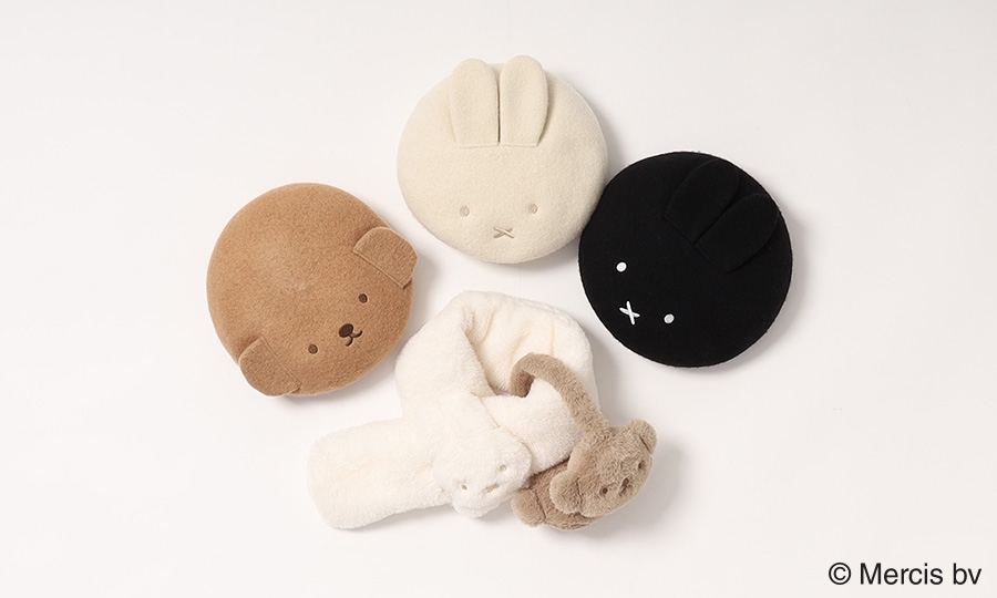 冬のコラボコレクションらしい、もこもこ素材のミッフィーとボリスをモチーフにした商品を展開いたします。
