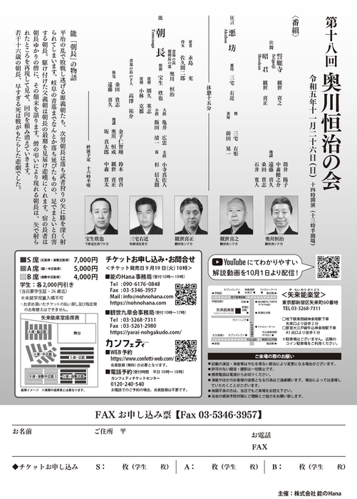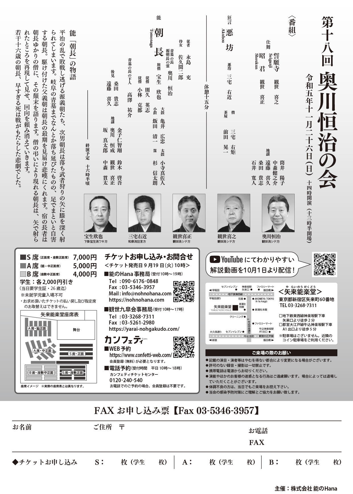 観世流シテ方能楽師・奥川恒治が修羅物の大曲に挑む 第18回奥川恒治の会『朝長』 カンフェティでチケット発売 | NEWSCAST