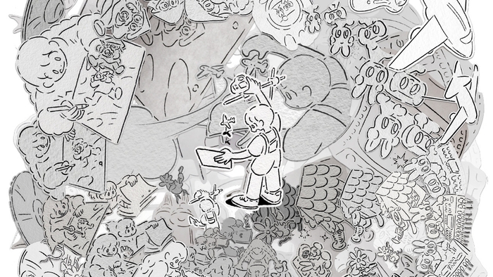 作家・トーチカが空間にアニメーションを共同制作するツールとして開発中のウェブアプリです。スマホやタブレットPCでの描画に適しており、複数人で空間に落書きをすることができます。2023年に続いての展示で、スティッキーボード(付箋)を貼る機能と描いた場所から離れると薄くなって消えるホログラム機能が追加されています。ぜひお楽しみください!