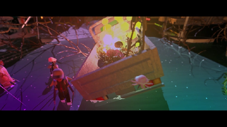 この映像では、「渋谷ハロウィンが伝承となった未来の渋谷」が映し出されている。かつての交差点は、古代のように再び水で満たされている。そのことによって、土地は成長一辺倒の都市開発から解放され、かつて開発において排除されてきたものたちが、戻ってきている。街の中でうごめくこれらのものたちには、障害物を避けて歩く設定がそれぞれ施されている。はじめは順調に徘徊しているが、次第に同じ場所に溜まりだす。システム上のエラーから生まれたこの光景は、ゴーストたちが輪になって楽しく踊っているようにも見える。