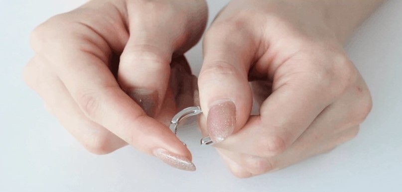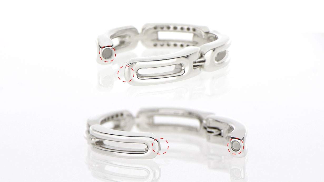 一般的なイヤカフやイヤリングとは違い、無段階調節の開閉構造を採用しています。