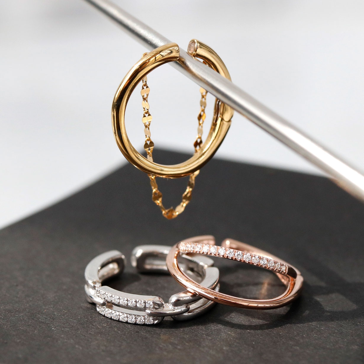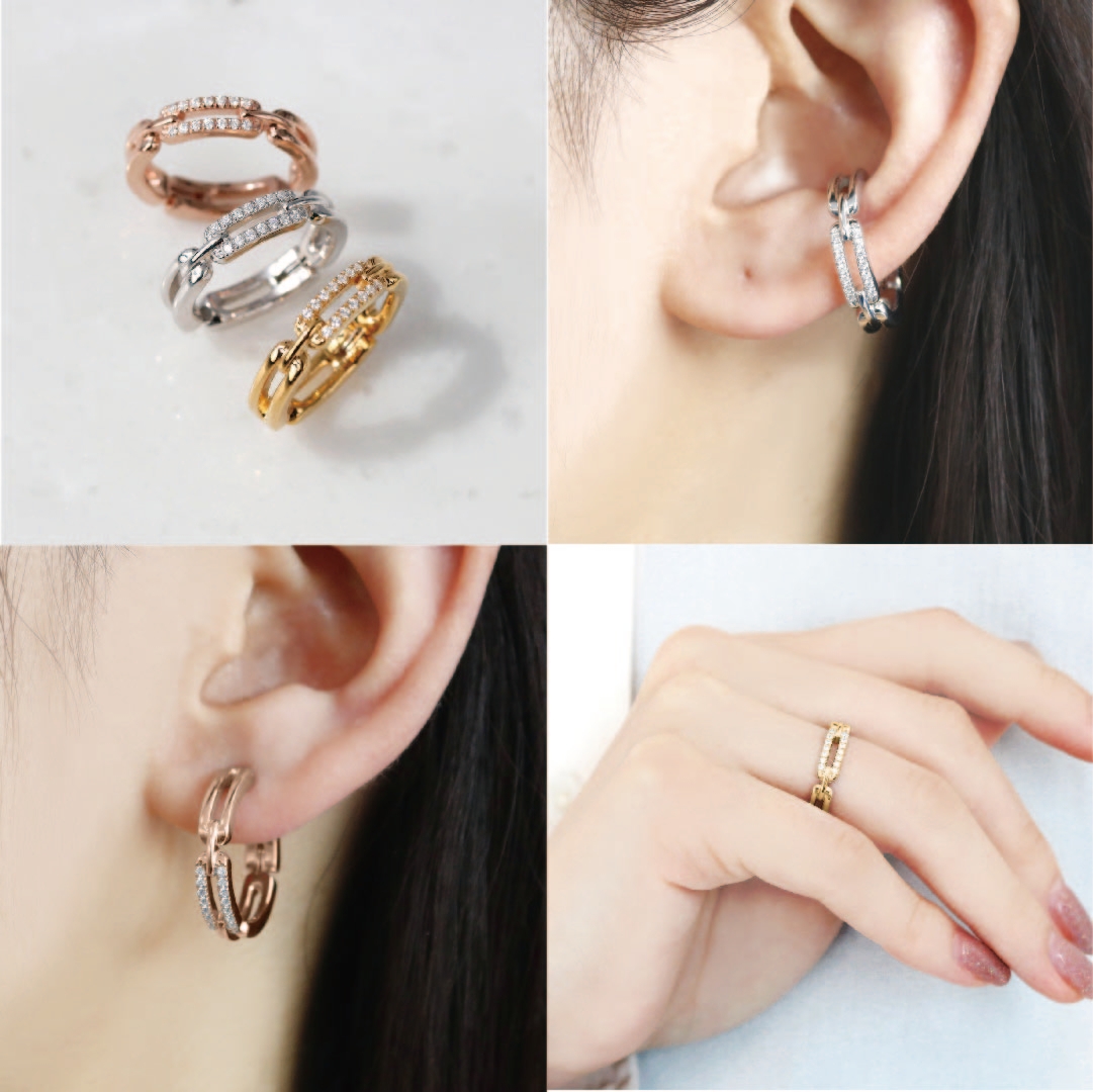 リング・イヤカフ・イヤリングと使い分けられる3WAYジュエリー