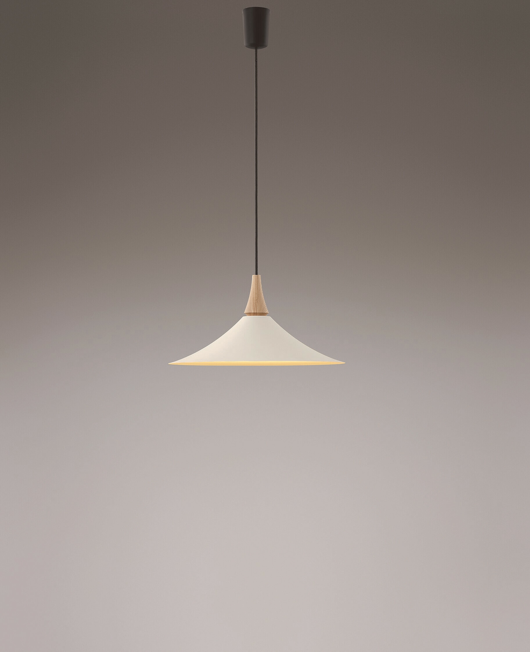 無垢の木飾りとセードだけのシンプルなデザインで、空間に温かみを与える北欧テイストの大ぶりペンダントライトを6機種ラインアップいたしました。セードの柔らかい曲面に沿って美しい光が広がる設計で、コード部分は、ブラックとグレーの糸を編み込んだ温かみの感じられるデザインを採用することで、従来のコードよりも北欧風なインテリアに調和します。空間のベースカラーや家具に合わせて選べるように色温度は、2色(2700K電球色/3500K温白色)、本体カラーを3種類(ウォールナット×マットファインホワイト/ホワイトアッシュ×マットファインホワイト/ホワイトアッシュ×マットブラック)取り揃え、お好みの北欧テイストの空間を演出します。