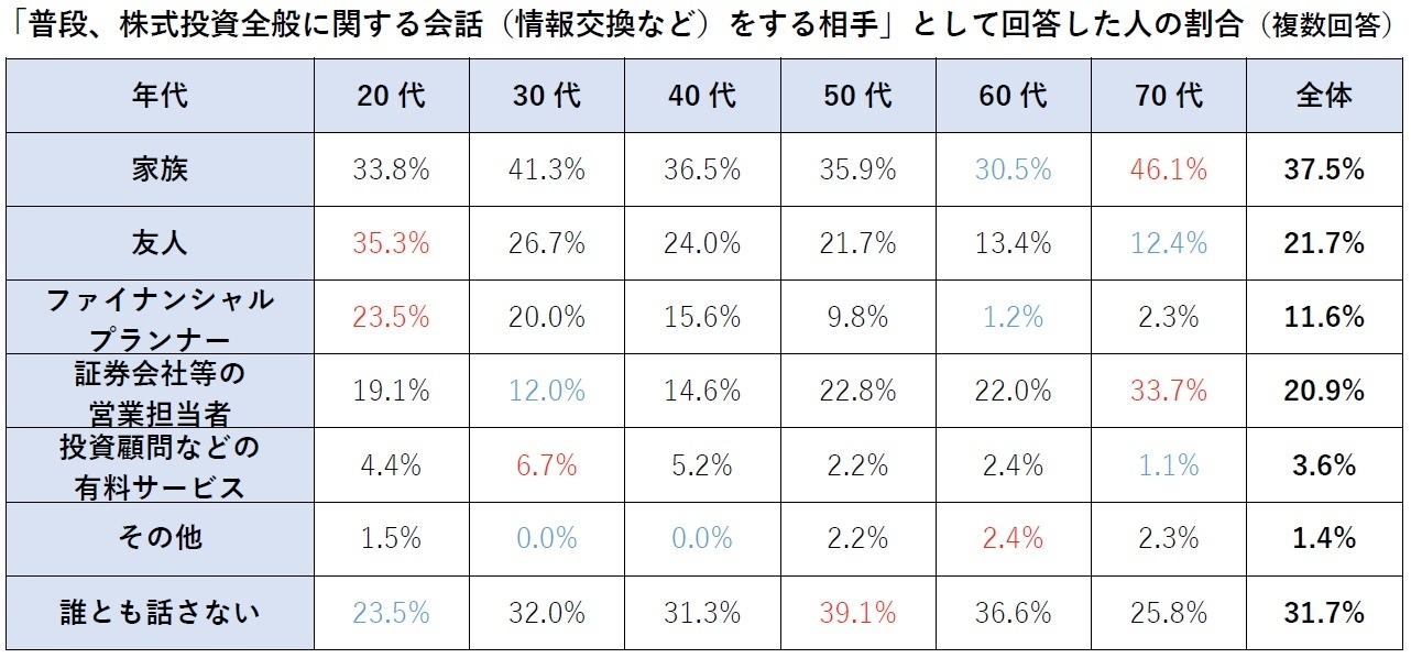 - 株式投資について話し合う相手は?