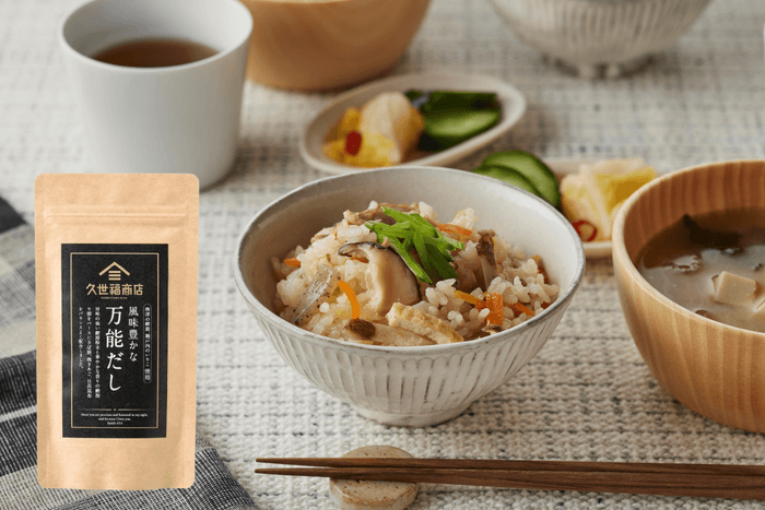 炊飯もできる、オートクッカー。久世福の看板商品「風味豊かな 万能だし」を使った、炊き込みご飯も絶品です。お米とお好きな具材に、万能だしのパックを煮出して旨みが凝縮されたおだしを加えれば、あとはスイッチを押すだけ!だしが効いたふっくらつやつやの炊き込みご飯の完成です。「風味豊かな 万能だし」は名前の通り万能なおだしなので、煮物料理や汁物にお使いいただくのもおすすめです。深みのある、本格的な味わいになりますよ。