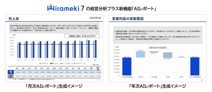 財務・会計システムおよび経営情報サービスを開発・販売する株式会社ミロク情報サービス(本社:東京都新宿区、代表取締役社長:是枝 周樹、以下「MJS」)は、MJSグループのトライベック株式会社(本社:東京都港区、代表取締役社長:後藤 洋、以下「トライベック」)が運営する中小企業向けDXプラットフォーム「Hirameki 7」(ヒラメキセブン)上の「経営分析プラス」において、生成AIを活用し、会計データと公的統計を基に、AI分析コメントがついたレポートを自動作成する『AIレポート』機能の提供を開始しました。