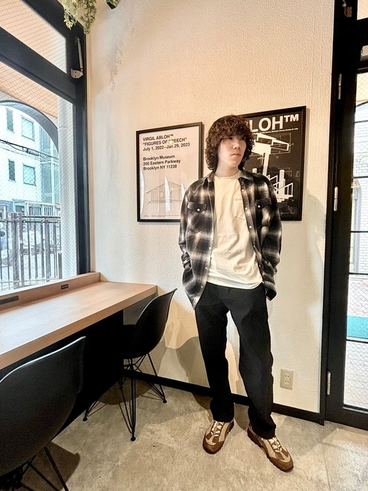 スタイリング写真(キーアイテム:ハイネックTシャツ)
