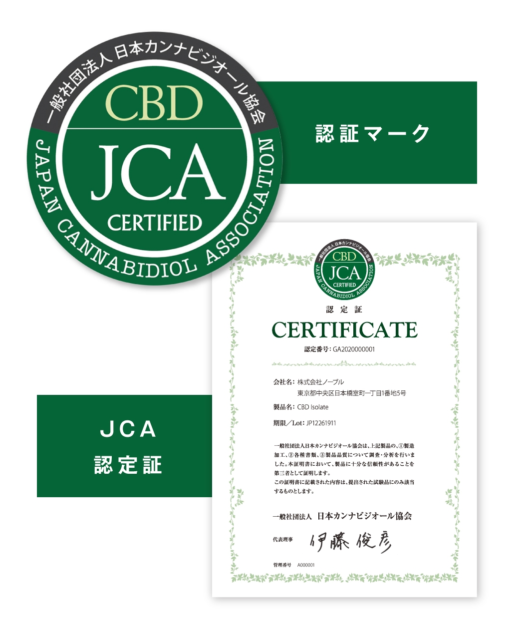 エビデンスとして、日本カンナビジオール協会から認証を受けております。