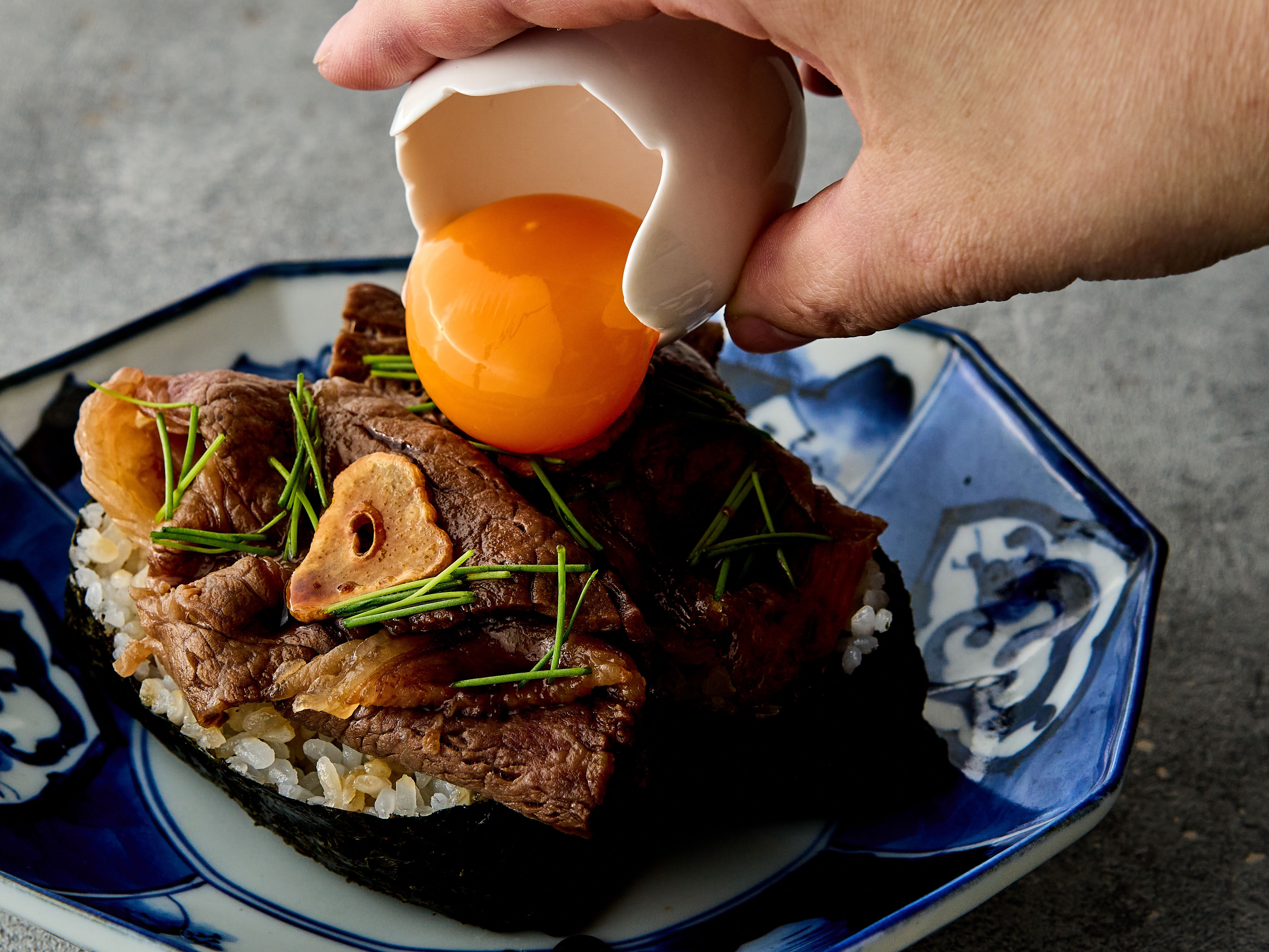 三浦牛とキノコいろいろ、生姜の効いたおむすびサンド 2,100円