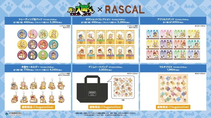 日本アニメーション株式会社(本社:東京都中央区、代表取締役社長:石川和子)がアニメーション制作・ライセンス展開を行う『あらいぐまラスカル』のキャラクター「ラスカル」とTVアニメ『魔入りました!入間くん』によるコラボレーショングッズの発売が決定いたしました。