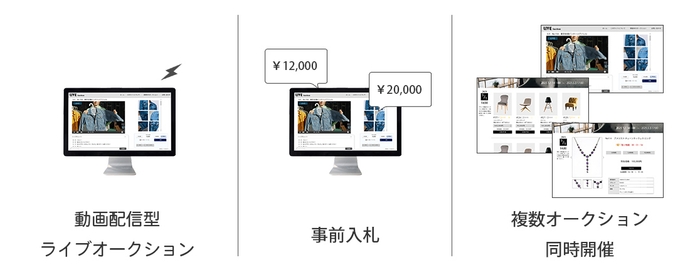 動画を配信しながらリアルタイムで競りを行うオークション形式のひとつ。