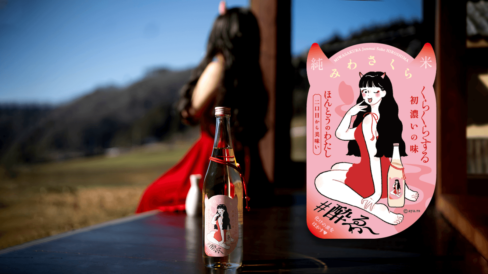 キャラクターデザインを手掛けたのは、広島在住の人気イラストレーターaya.mさん。妖艶な魅力で、初濃いを味わった人を虜にする艶美な妖怪『みわさくら』。その色っぽい佇まいと、いたずらな笑顔で、私たちを甘くとろける酔いの刻へと誘い込みます。