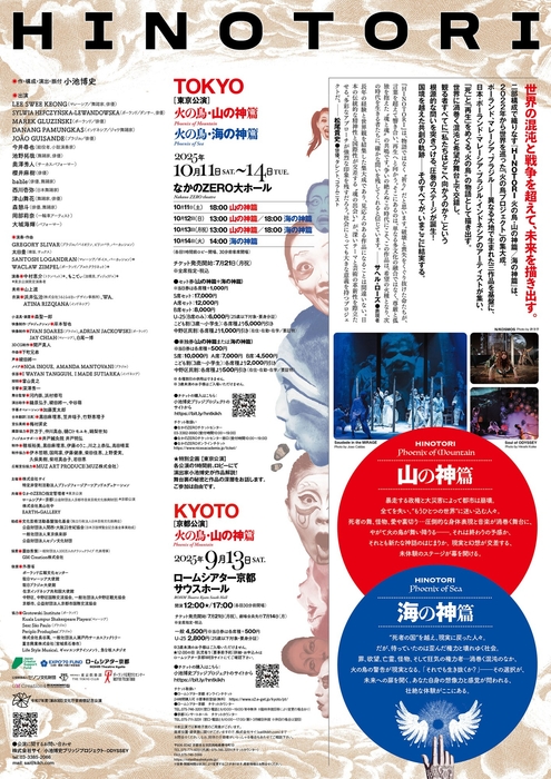 株式会社サイ、特定非営利活動法人ブリッジフォージアーツアンドエデュケーション主催、『HINOTORI 火の鳥・山の神篇』『HINOTORI 火の鳥・海の神篇』が2025年10月11日(土)〜 14日(火)になかのZERO 大ホール(東京都中野区中野2丁目9番7号)にて上演されます。
