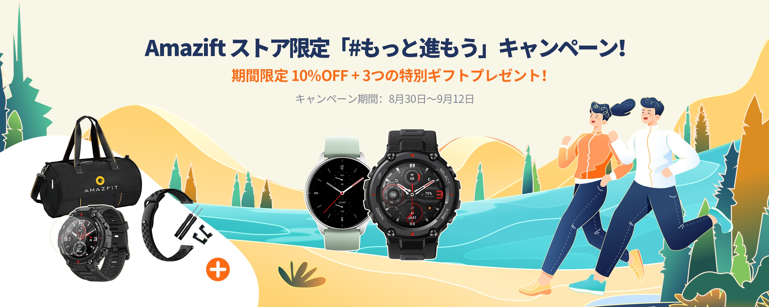 2021年8月30日、日本・東京 - ヘルスケア・スマートウォッチブランドのAmazfitは、期間限定でブランド公式グッズがついてくる「#もっと進もう 」キャンペーンを、8月30日から9月12日までの期間限定で実施いたします。