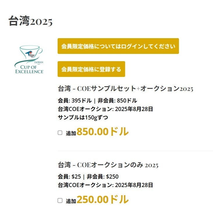 2025年8月14日以降に注文されたサンプルコーヒーBOXは、8月28日のオークション前に配送されることは保証できません。ご注意ください。