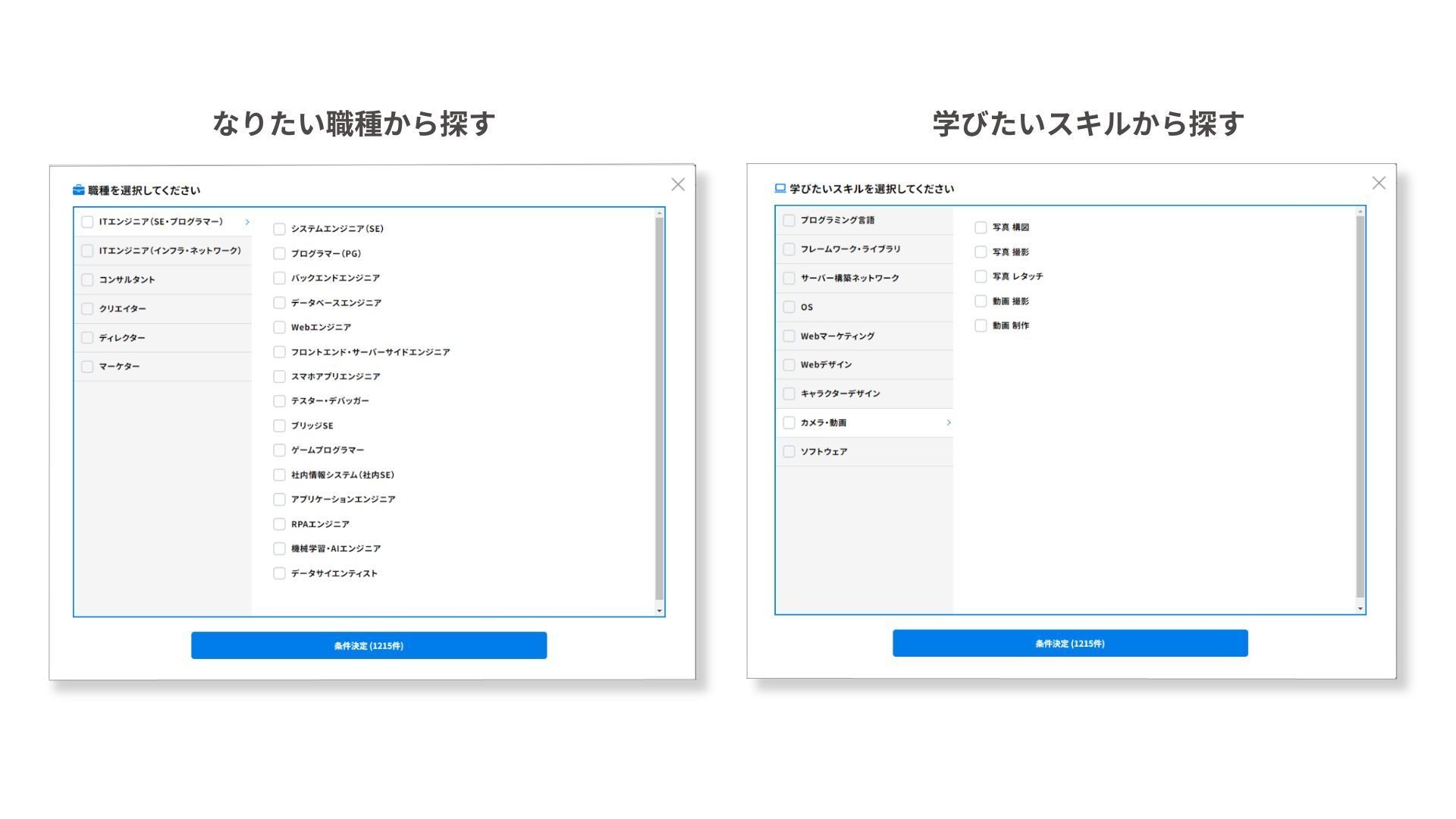 「マナビタイム」は、希望のエリアやなりたい職種、学びたいスキル、欲しい資格などのこだわり条件にマッチした、全国各地のスクール/コース情報から検索できることが強みです。スクール/コースが具体的にイメージできる動画や雰囲気が伝わる写真の掲載、スクール卒業生による口コミ情報など、マナビタイム編集部とスクール担当者が、多角的で信頼性の高い情報を提供しています。また30パターンの職業タイプ別に学ぶべきスキルを診断できる「IT業界適職診断」など、ITスキルに関する豊富なコンテンツもご用意しています。
