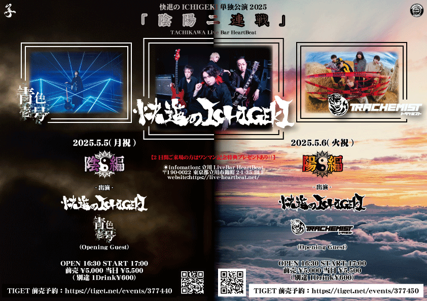 快進のICHIGEKIが5月5日、6日に東京・立川Live Bar HeartBeatにて「陰陽二連戦」と名付けた2daysのワンマンライブを開催します。