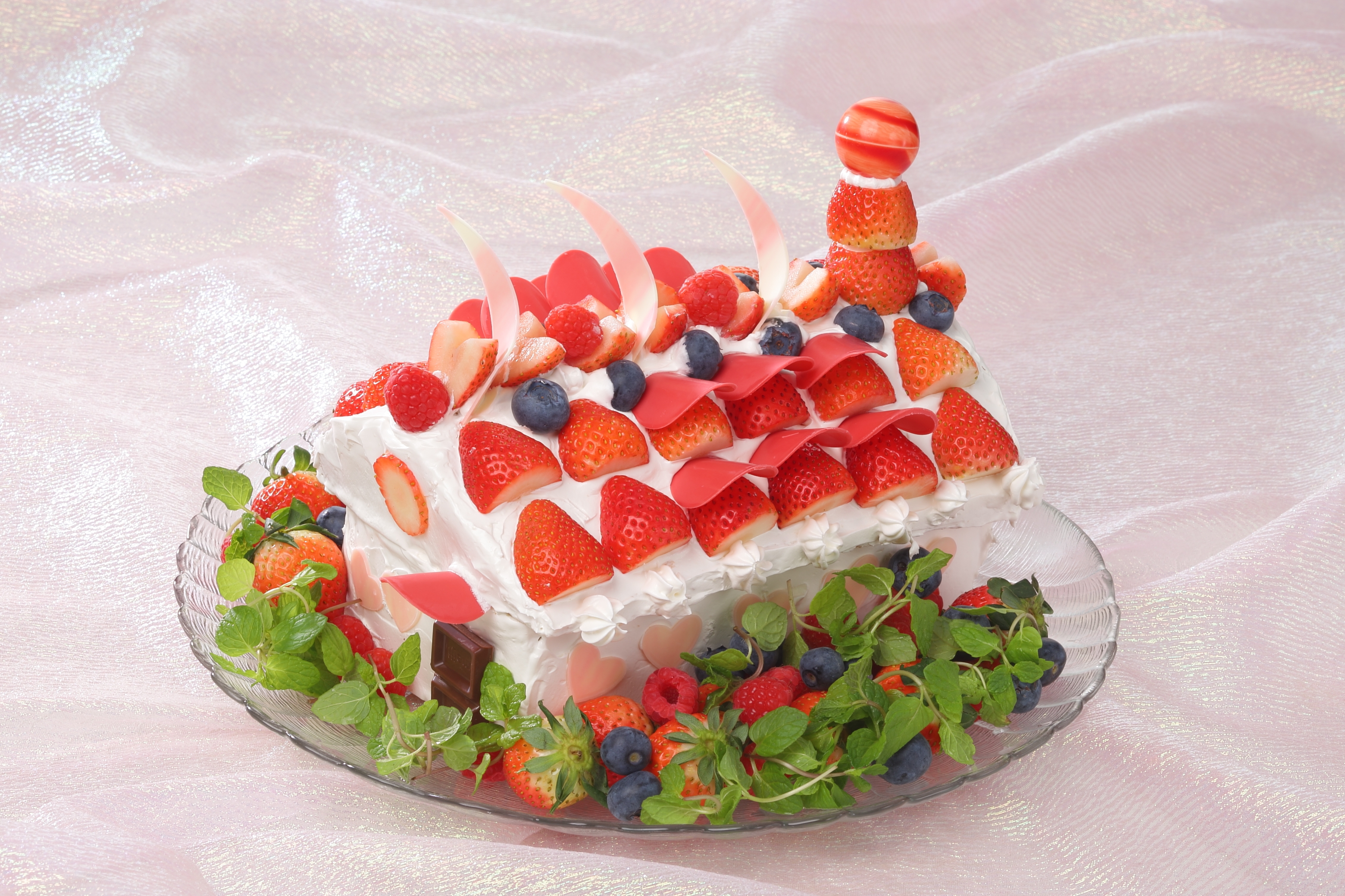 また、ドリンクを含めて全てのメニューにいちごを使った約60種類のメニューはブッフェスタイルでお好きなだけお召し上がりいただけます。いちごの屋根やえんとつが可愛い“おかしな家”、ゼリーの中にいちごがぎっしり詰まった“白ワイン風味のゼリー”、ビスキュイ生地を使ったいちごの“ロールケーキ”や濃厚な味わいの“フレジェ”などのスイーツから、ピッツァをいちごで楽しむ“恋するいちごのマルゲリータ”、ピンク色が可愛いいちごと明太子を合わせた“ストロベリー明太子クリームパスタ”や“berry ハンバーグ”、いちご風味の“赤いオムレツ”など意外性を追求した料理もぜひお楽しみいただき、いちごづくしの創作メニューをご堪能ください。