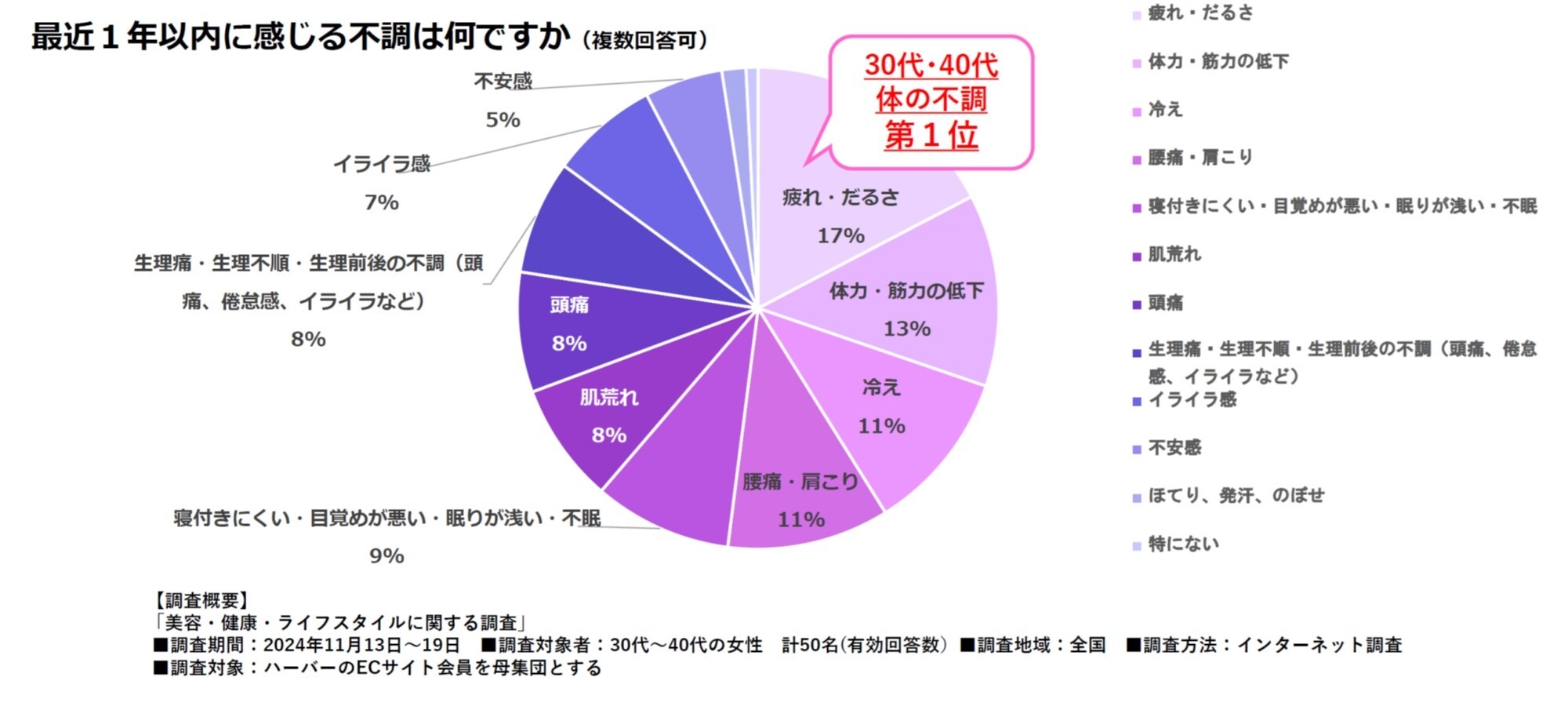 ハーバーでは2024年2月と11月に、20代~70代の方を対象に、美容・健康・ライフスタイルについて独自にインターネット調査を実施しました。年齢や生活環境によりお悩みの上位が少しずつ異なっているという結果に。