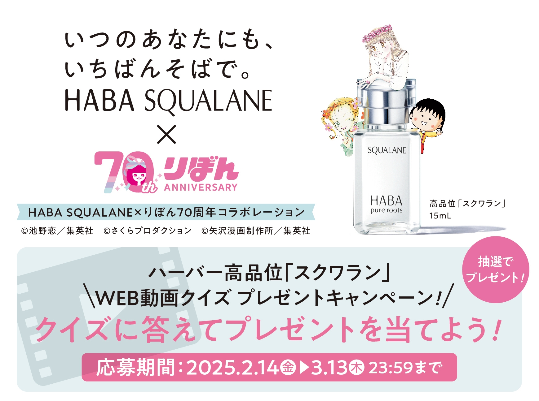 ハーバーは、本年70周年を迎えたまんが雑誌「りぼん」(集英社)とコラボレーションし、WEB動画『いつのあなたにも、いちばんそばで。HABA SQUALANE』~「この日々に、スポットライトを。」篇~を昨年10月より公開しております。