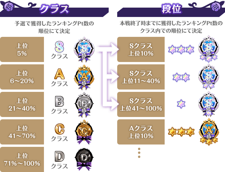 ※本戦では、「ランキングPt」を獲得しても、クラスの変動はありません。