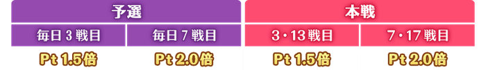 ※本戦では、予選で獲得した「ランキングPt」が引き継がれます。