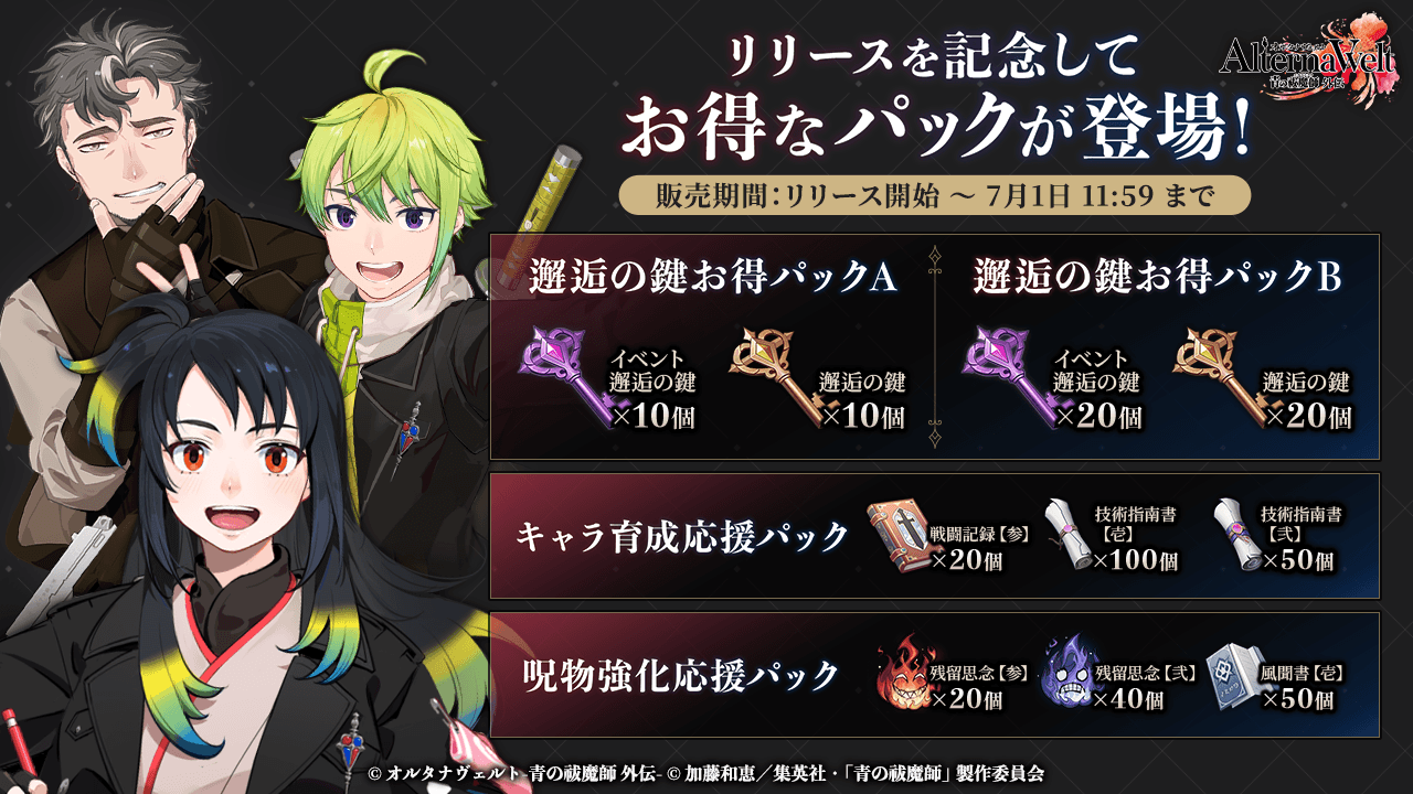 ゲーム『オルタナヴェルト -青の祓魔師 外伝-』のiOS/Android版を2025年6月25日にサービス開始いたしました。合わせてゲーム内では各種キャンペーンを実施、その他リリース記念番組の配信を行います。