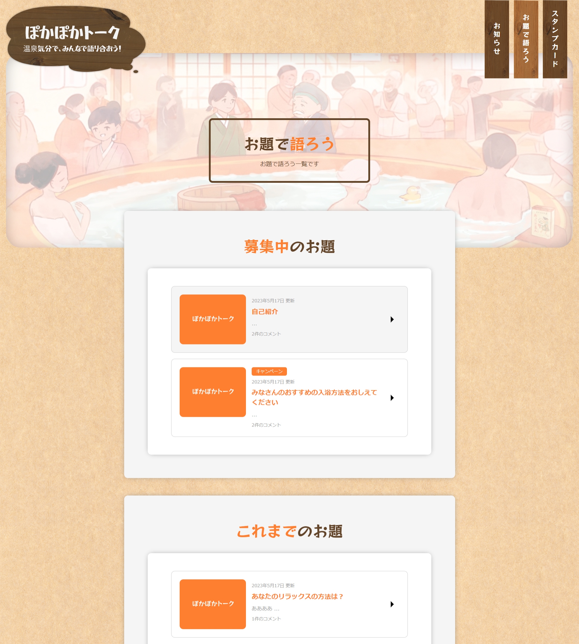 「ぽかぽかトーク」お風呂で語ろうのコンシェルジュ
