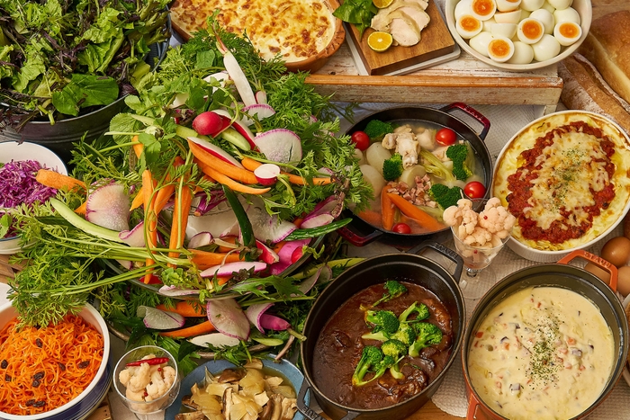 地元野菜とオリジナルデリを中心としたビュッフェに、寒い季節に嬉しい“あったかメニュー”を加え、心も体も温まる内容へと進化しました。あわせて、クリスマス限定メニュー、年末年始限定メニュー、ならびに年末年始の営業スケジュールについて下記の通りご案内いたします。