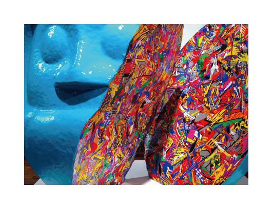 生産が終了したミニ四駆のドレスアップステッカーを使ったコラージュアート作品を制作。