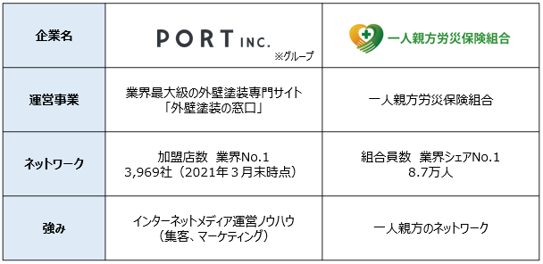 ポート株式会社(代表取締役社長 春日博文、所在地:東京都新宿区、以下:当社)は、一般社団法人一人親方労災保険組合(代表理事:古口仁、所在地:東京都中央区、以下:一人親方労災保険組合)と業務提携契約を締結し、「両社の強みを活かしたお客様へのサービス強化」を目的に、リフォーム領域において施工業を運営する一人親方(個人事業主)向けのサービスを共同で運営していくことが決まりましたので、お知らせいたします。