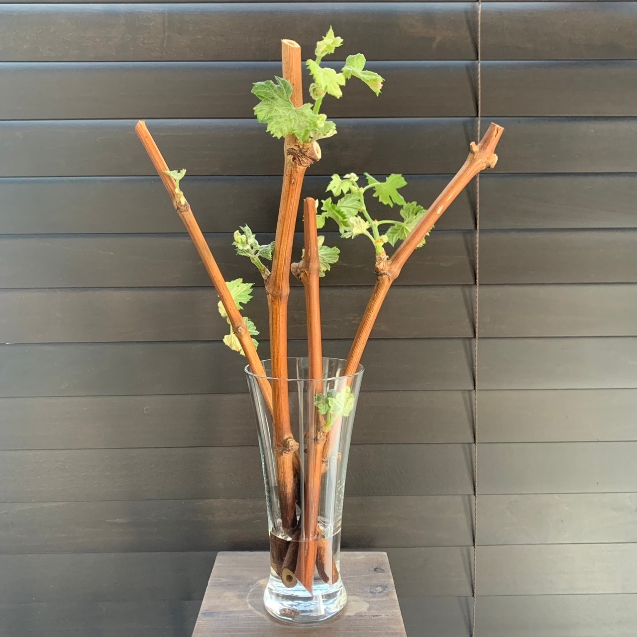 鑑賞用ワインブドウの枝は、花瓶にさしてから葉が動いて、花が咲いて、実がつき収穫までの最大約4ヶ月間ブドウの成長過程が楽しめます。