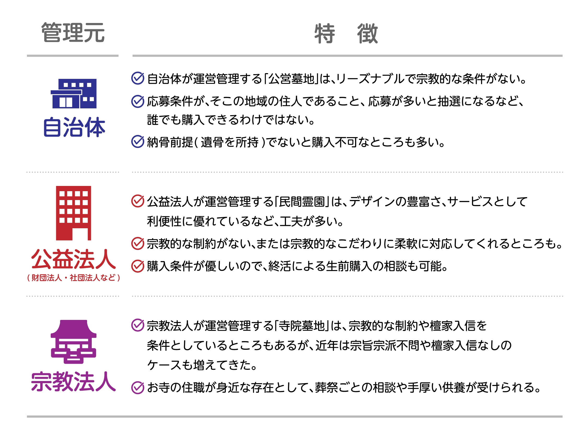お墓選びは、私たちの人生で重要な決断のひとつです。かつてはお墓を「継ぐ」のが一般的でしたが、現代はお墓の形やスタイルが多様化し「選ぶ」が新たな常識となりつつあります。年末年始、家族が集まるこの特別な時期を利用して、家族みんなでお墓選びについて話し合い、共に未来を見据えることが大切です。ここでは、さまざまなお墓の特徴を紹介します。家族との会話のきっかけとして、お墓選びの参考にしていただければ幸いです。