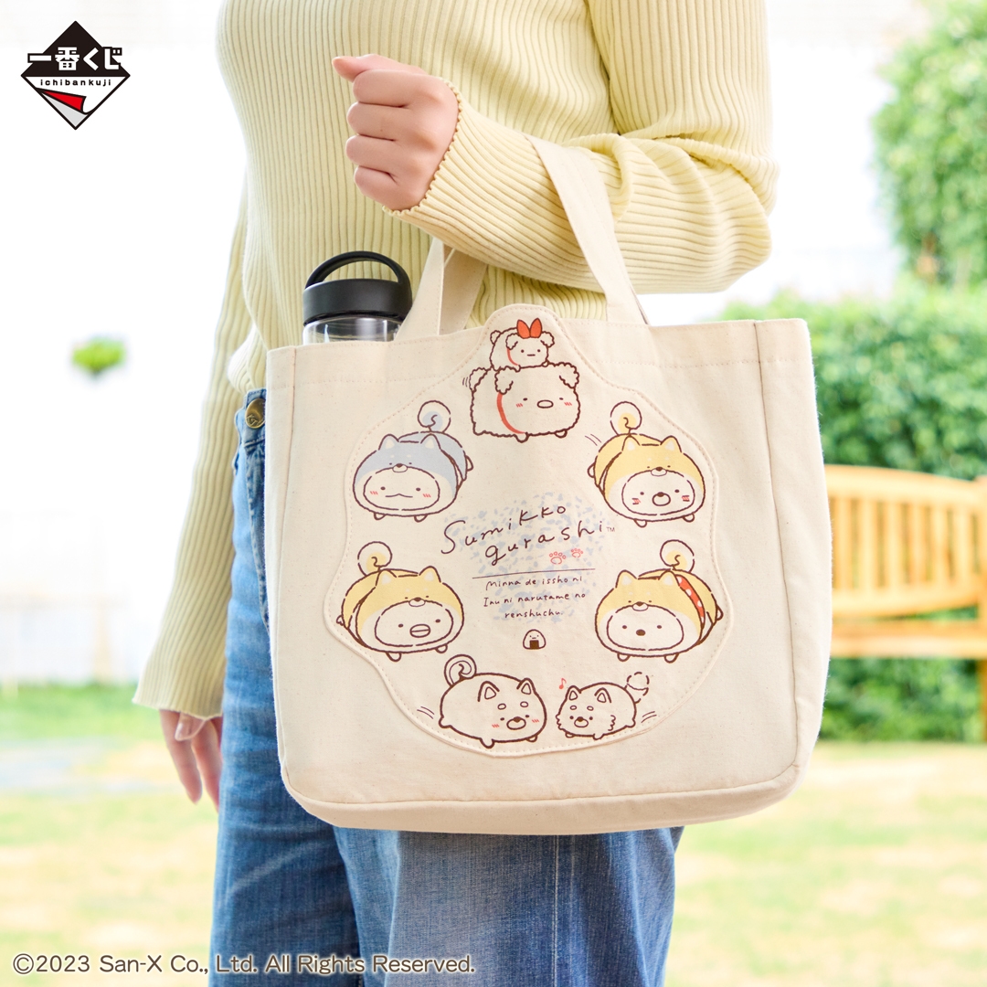 本商品は、「すみっコぐらし」のストーリーの1つ「こいぬといぬごっこ」をテーマにした一番くじです。ぬいぐるみをはじめ、トートバッグ、巾着など実用アイテムも多数ラインナップしました。