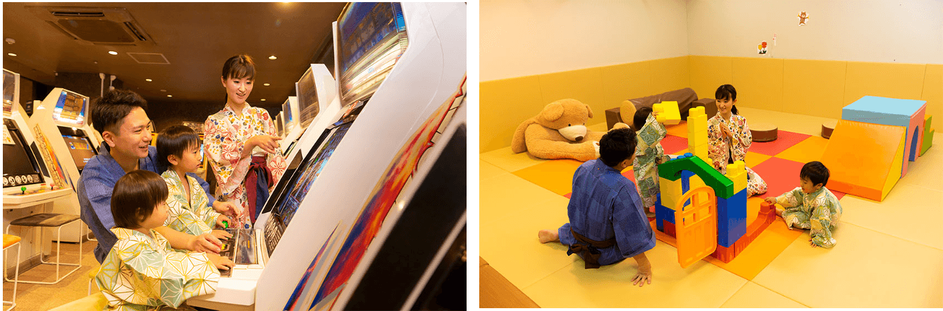 一定世代の方から「懐かしい!」というお声をいただくことが多いアーケードゲームも様々な種類をご用意し、家族やお友達と和気あいあいとお楽しみいただいています。