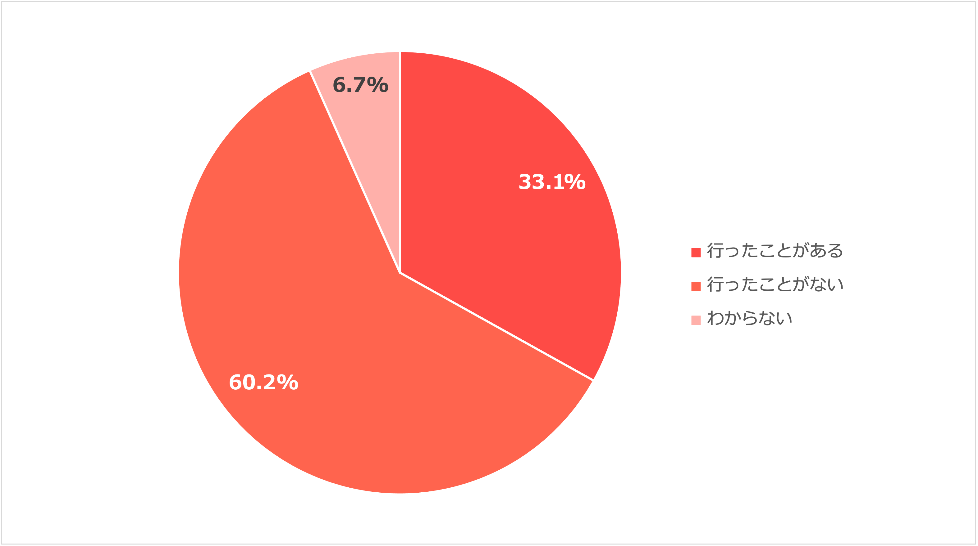 身体に疲れや痛みを感じたときに行く人が多い整体やクイックマッサージ等リラクゼーションサロンですが、実際に行ったことがあるか聞いたところ、33.1%と約1/3の人が「行ったことがある」と回答、「行ったことがない(60.2%)」は「行ったことがある」の倍近くにのぼることがわかりました。