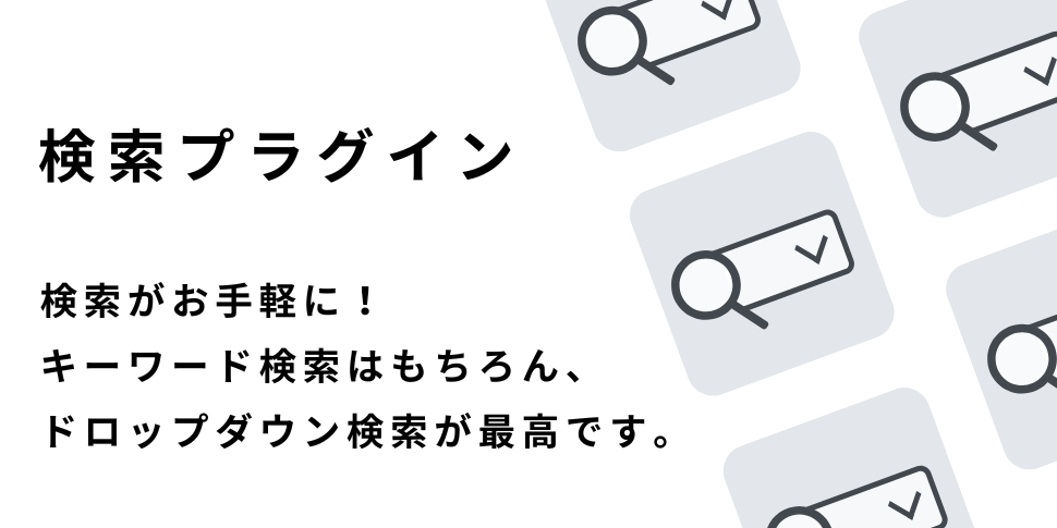 「検索プラグイン」はkintone(キントーン)専用の検索用プラグインです。Googleのようなキーワード検索に加え、ドロップダウン型の絞込検索という2つの機能を持つことが特長。