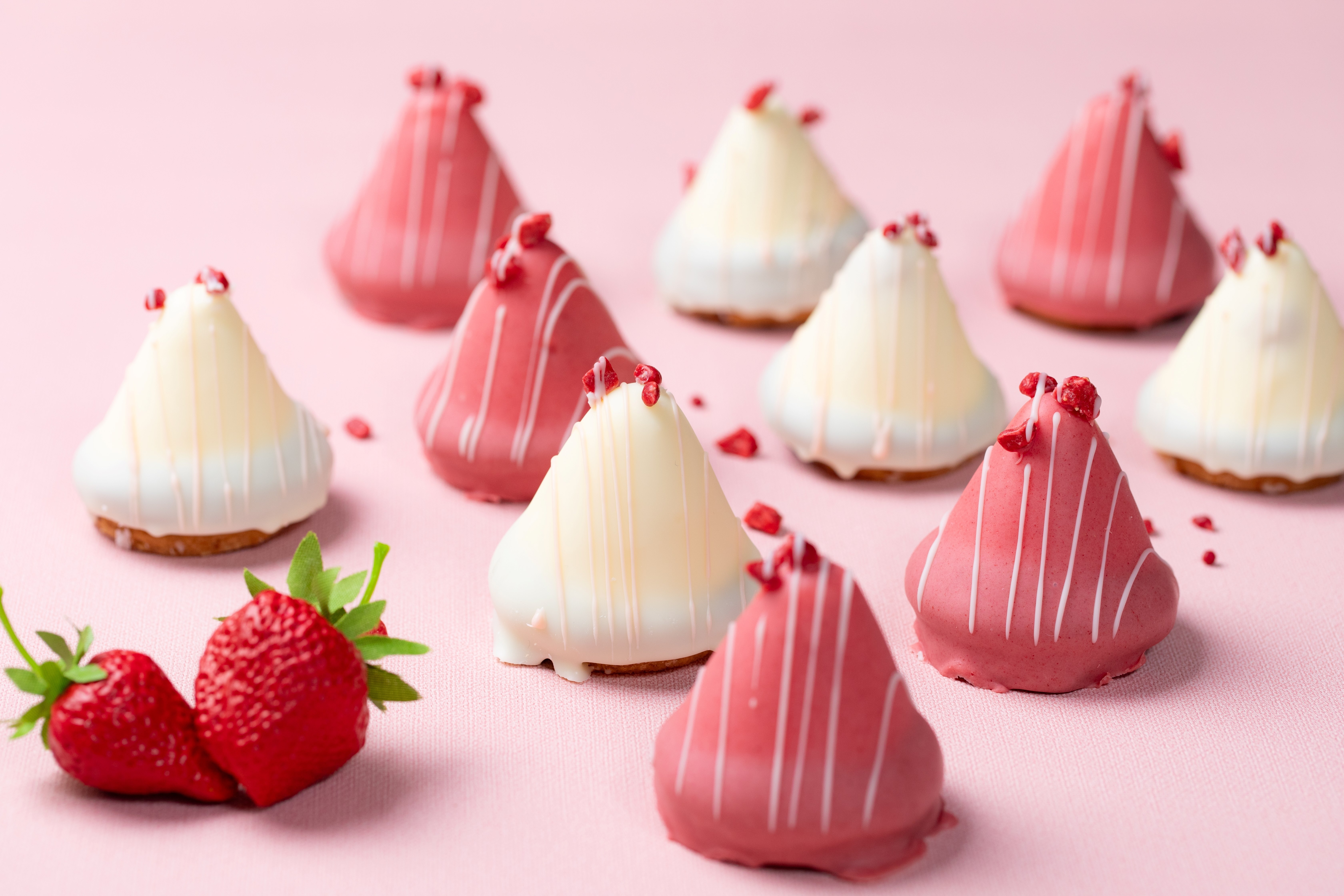 春限定新フレーバーとして、ホワイトチョコレートをコーティングした「いちごシャンティ~white~」と、ストロベリーチョコレートをコーティングした「いちごシャンティ~pink~」の2種類をご用意いたします。春らしさを感じるピンクとホワイトの華やかな彩りで、お友だちへの手土産スイーツとしてもぴったりです。