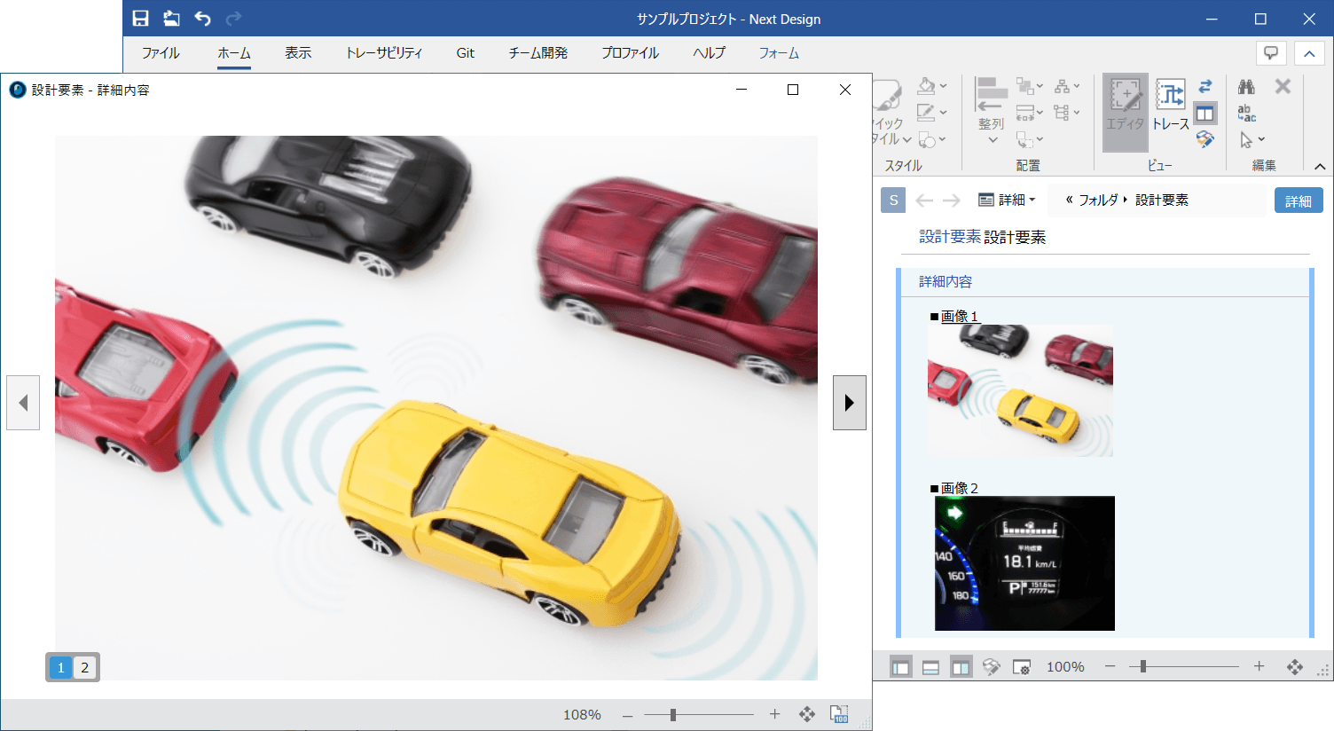 Next Designは、各工程の設計情報の構造と関連を定義した「メタモデル」と、それを表現するための図・文書表現の「ビュー定義」を開発現場の観点・用途に合わせることで専用の設計ツールにできます。これにより、今までWord/ExcelやUML/SysMLで表現されて1つのツールに統合できいた仕様書・設計書など、開発現場固有の設計手法・プロセスを整理して、トレーサビリティを保ちながら組織横断で設計データの共有を実現します。2020年の提供開始以来、自動車業界だけでなく、電気機器など多様な業種で幅広く利用されています。