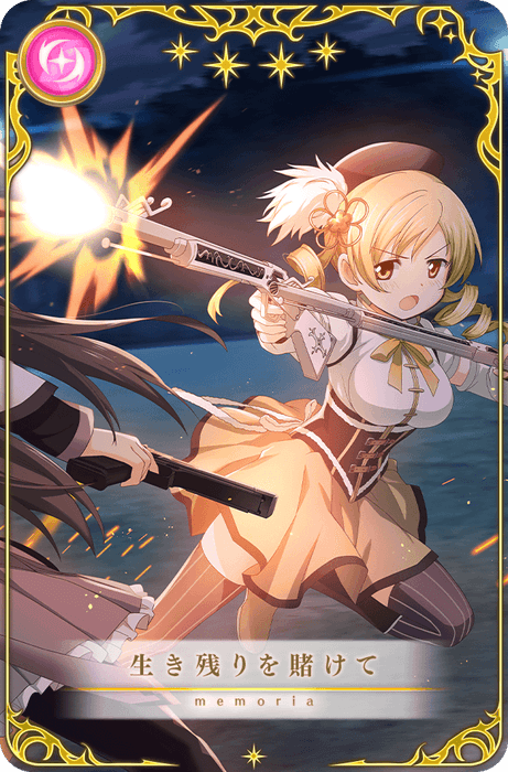 本ガチャより、新魔法少女「巴マミ scene0 ver.(CV.水橋かおり)」と新メモリア「生き残りを賭けて」「平行な世界」が期間限定で登場いたします。